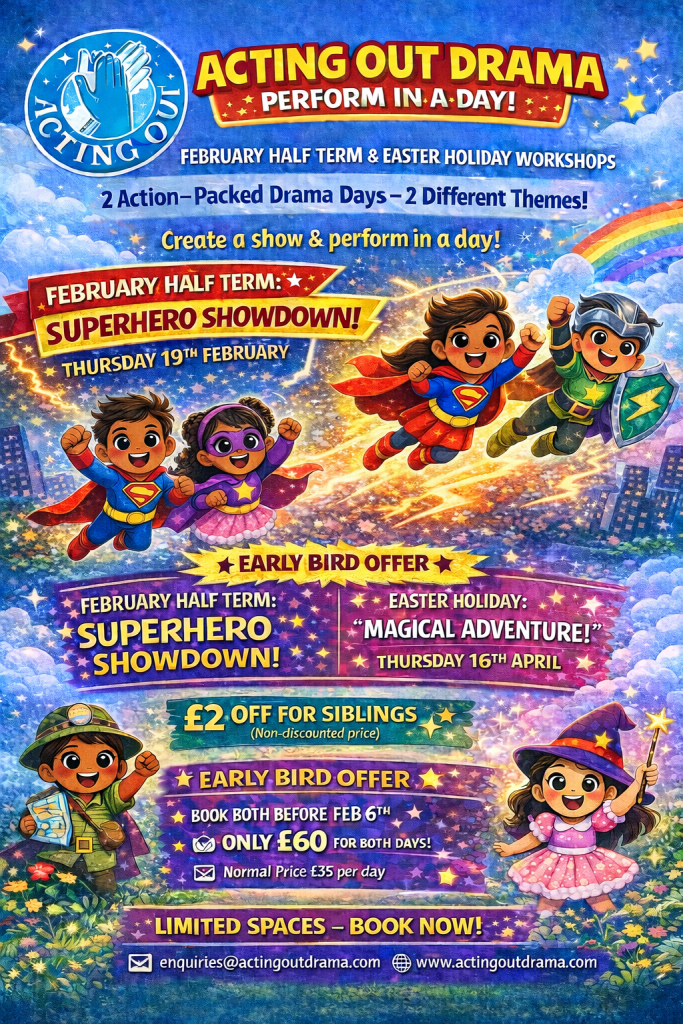 To Book http://www.ticketsource.co.uk/actingoutdramaworkshops